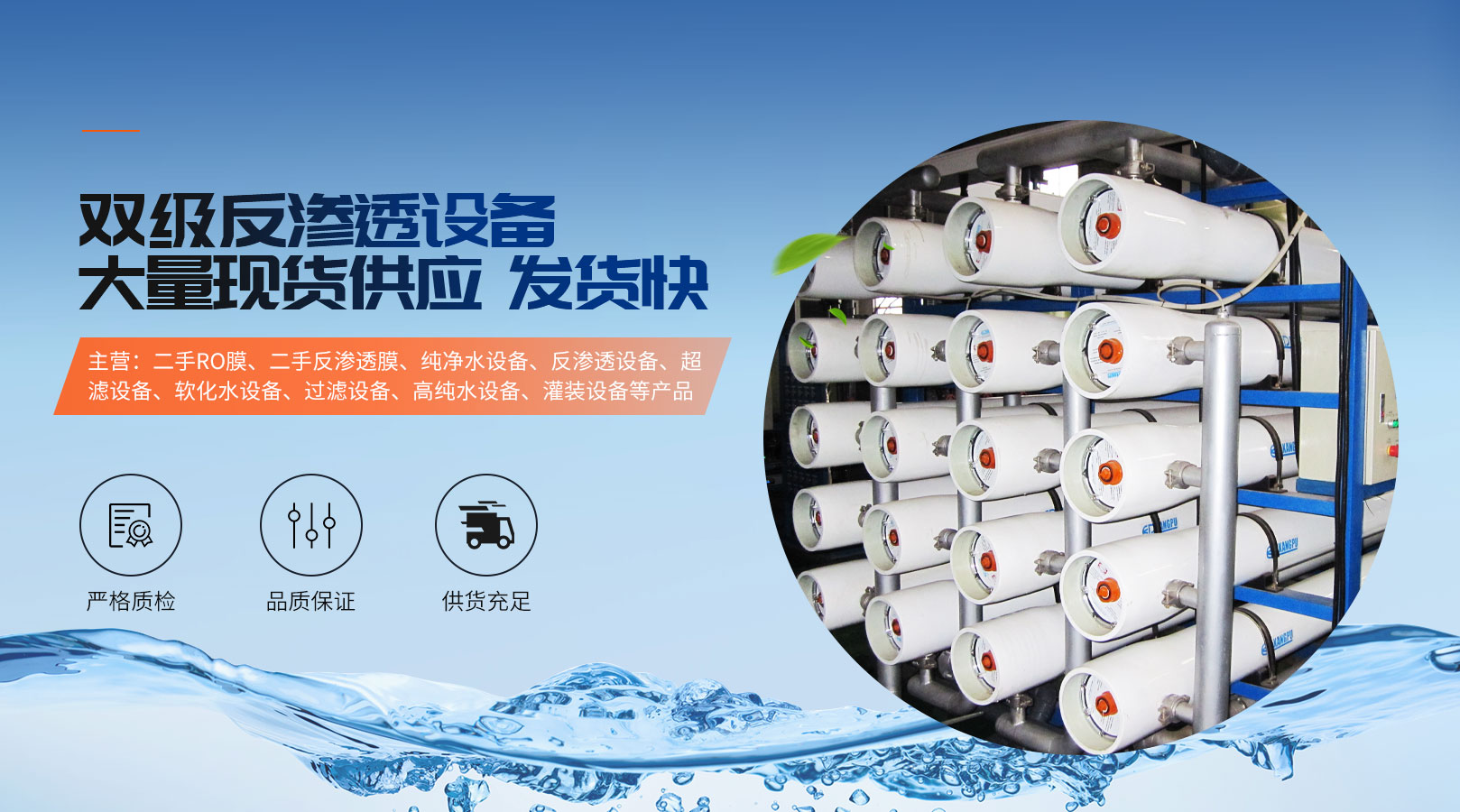 濰坊巨火龍水處理設備有限公司從事二手水處理設備、灌裝設備、水利機械設備等制造銷售安裝,主要產品有二手RO膜,二手反滲透膜,純凈水設備,反滲透設備,超濾設備,軟化水設備,過濾設備,高純水設備,灌裝設備,EDI離子交換設備等,是一家集開發(fā)、制造、銷售服務為一體的企業。其中反滲透設備是我公司優(yōu)良膜元件及技術設計制造的,主要應用于乳業、酒水、飲料、制藥、化工、電力等行業的脫鹽水制造或工藝純水制造。